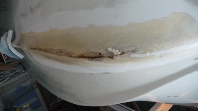 Dessous de coque avant réparation