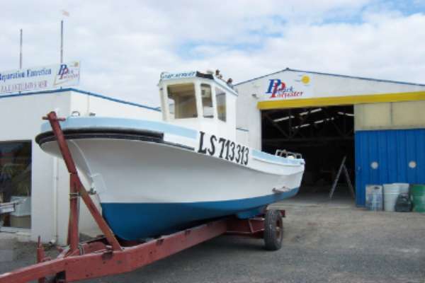 Bateau sortant de l'atelier restauré avec construction cabine polyester